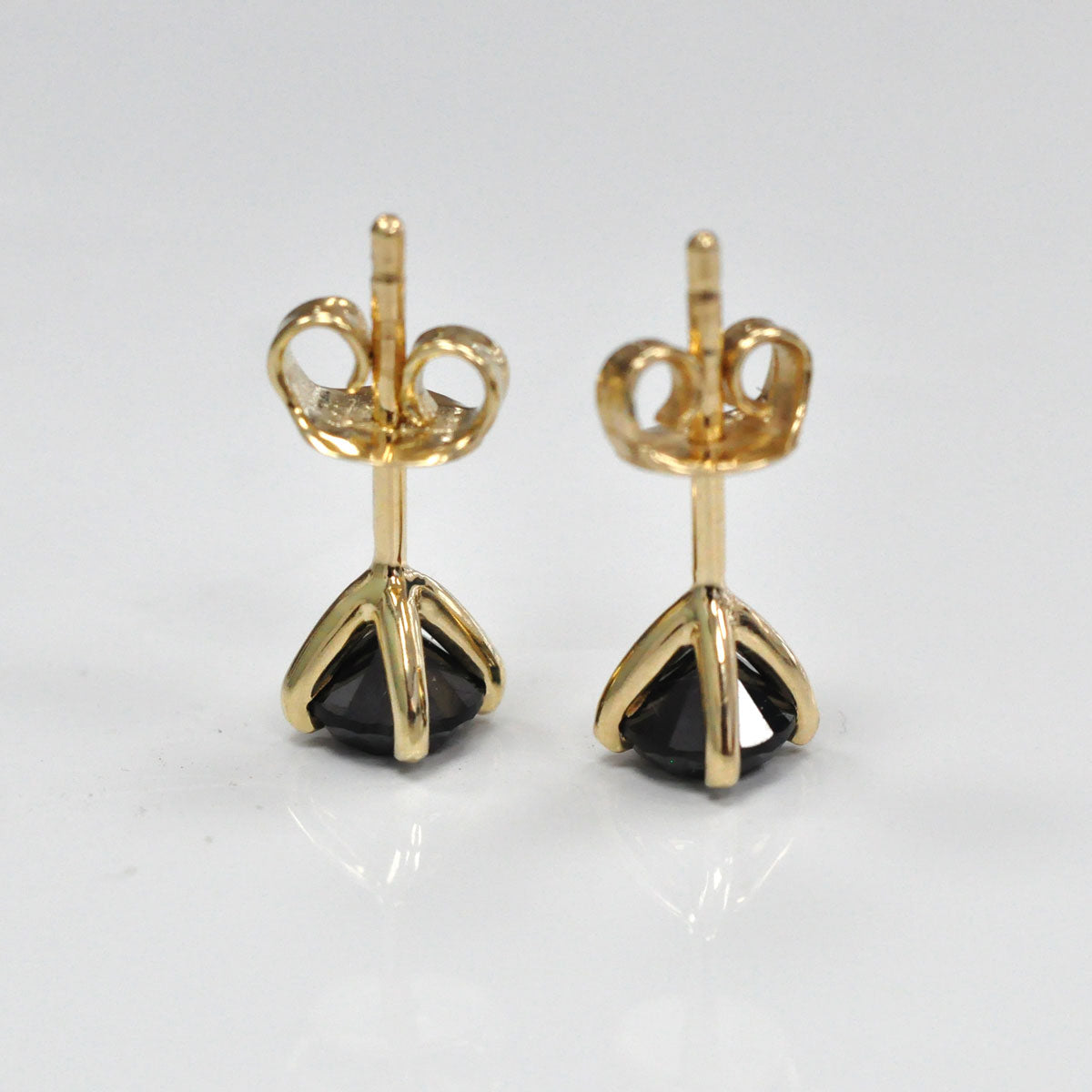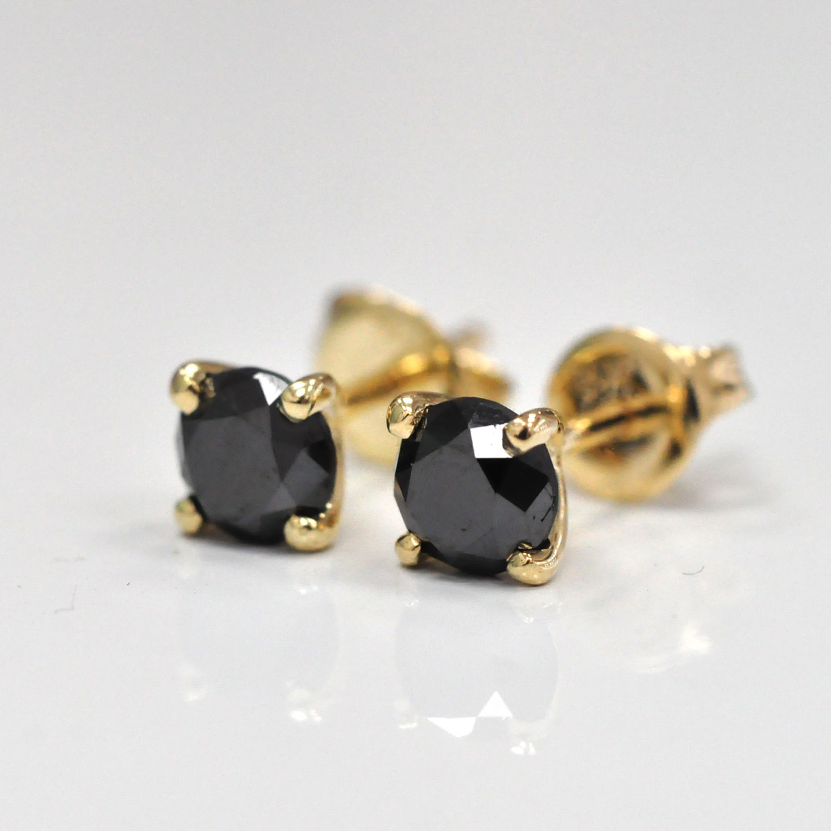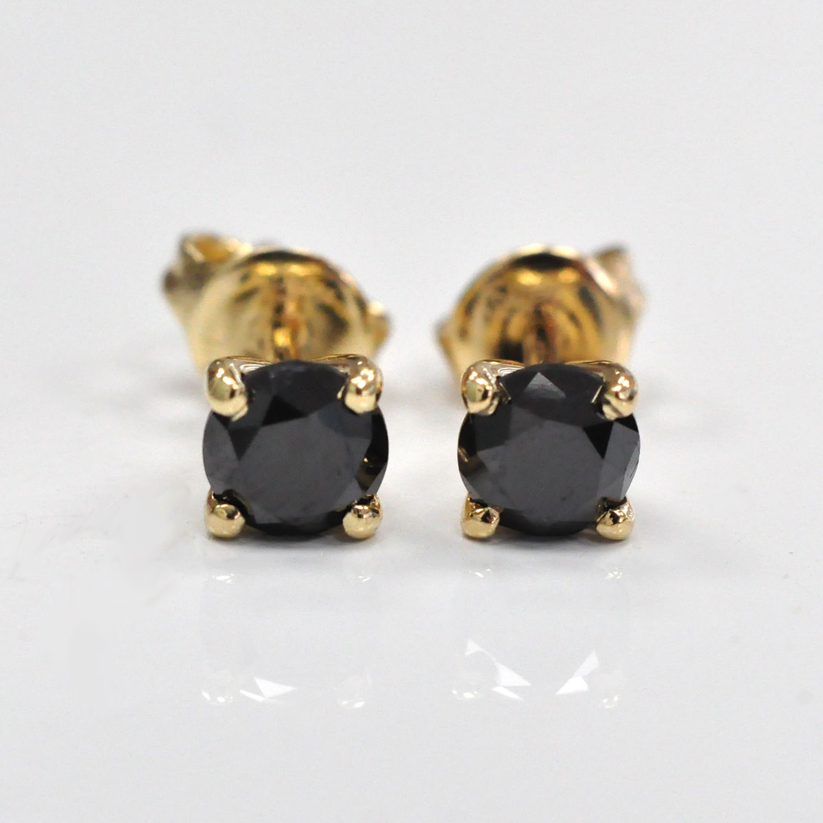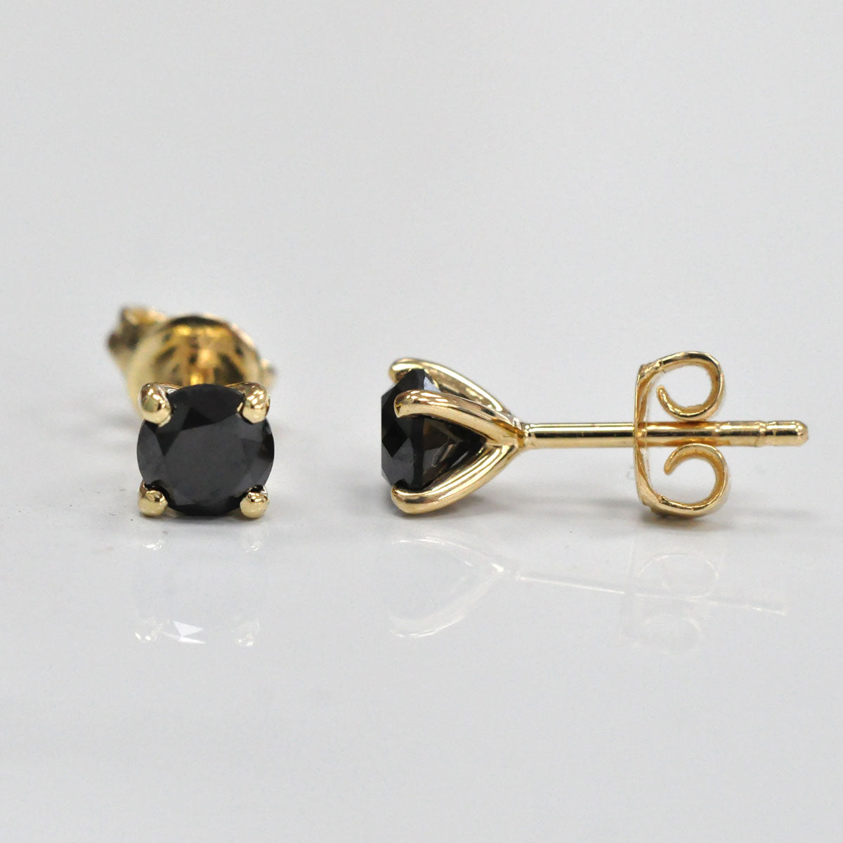 Sleek and modern, these classic studs feature bold round black diamonds set in 14K yellow gold. The rich contrast between the deep black sparkle and warm gold makes them a versatile choice-perfect for both everyday wear and evening elegance.