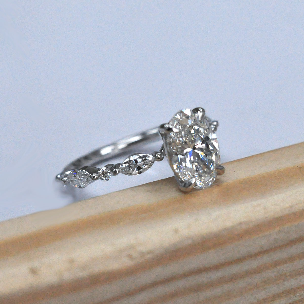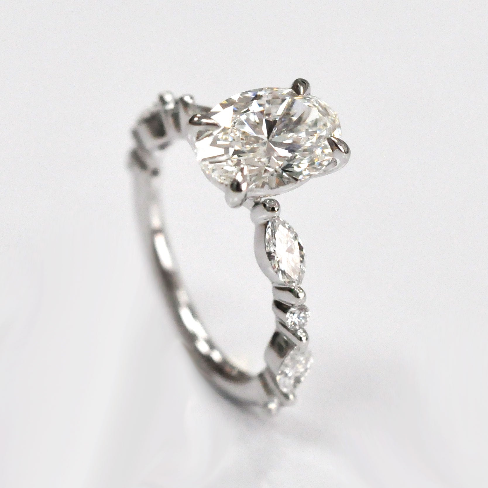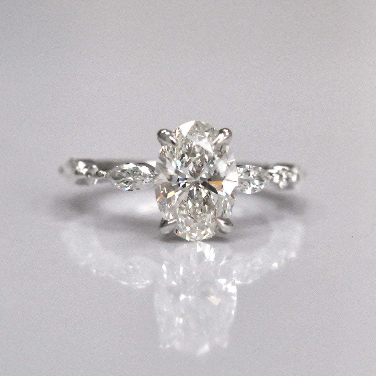 Oval Center Diamond with marquise & Round side diamonds ring